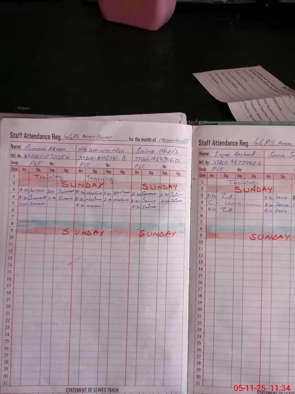 | CNIC | Full Name | Designation | R/C | Absence During Last Calender Month |