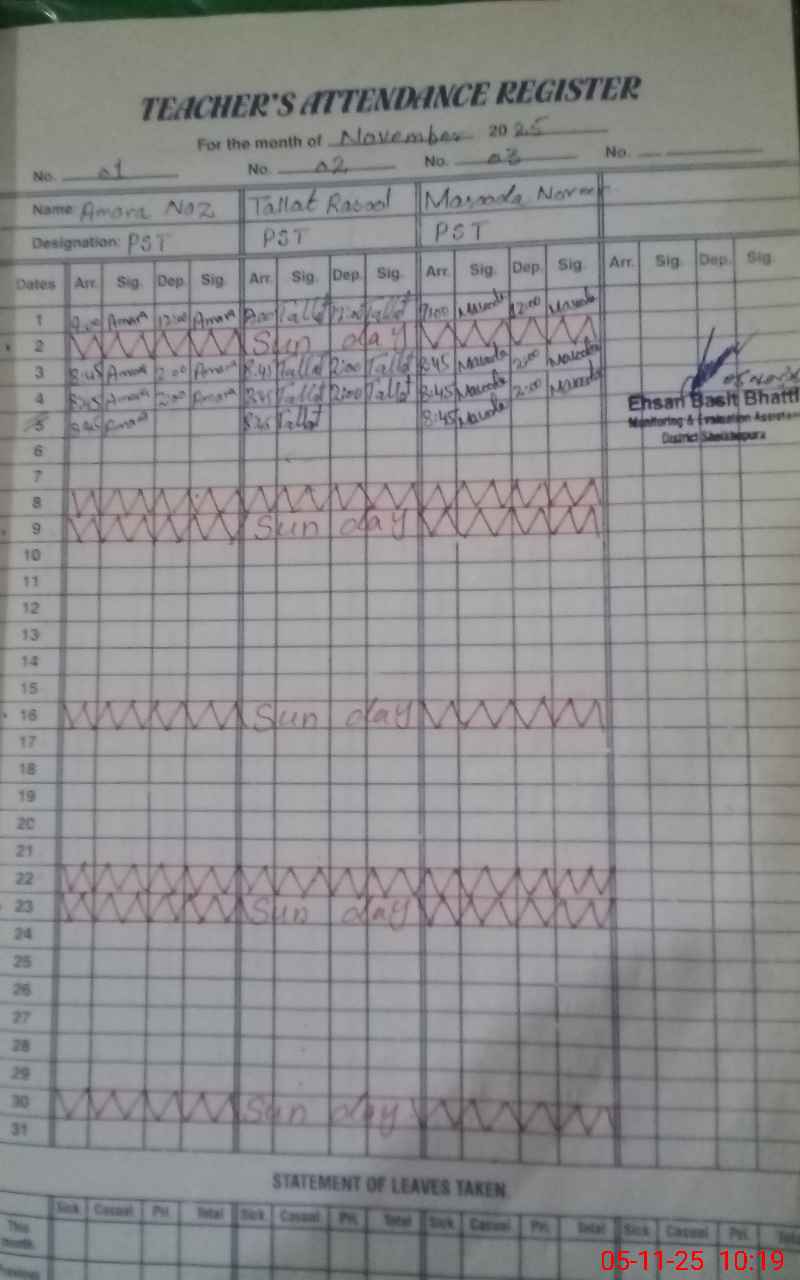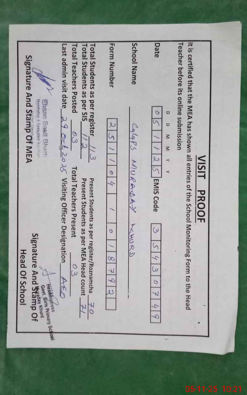 | EMIS Code: 35430749 | Name of School: GGPS MURADAY KHURD | |||