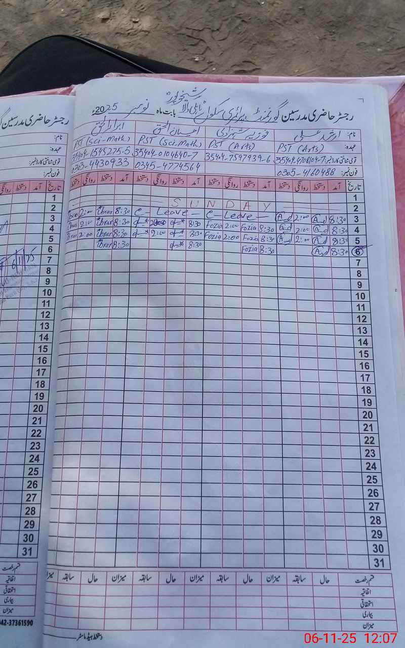 | Name: Ar**** Al**** Designation: (School Headmaster's/Headmistress's) PST Phone/Cell Number: 03**** |