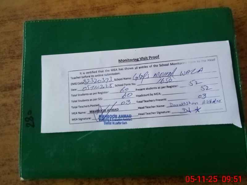 | EMIS Code: 32320373 | Name of School: GGPS MEHAR WALA | |||