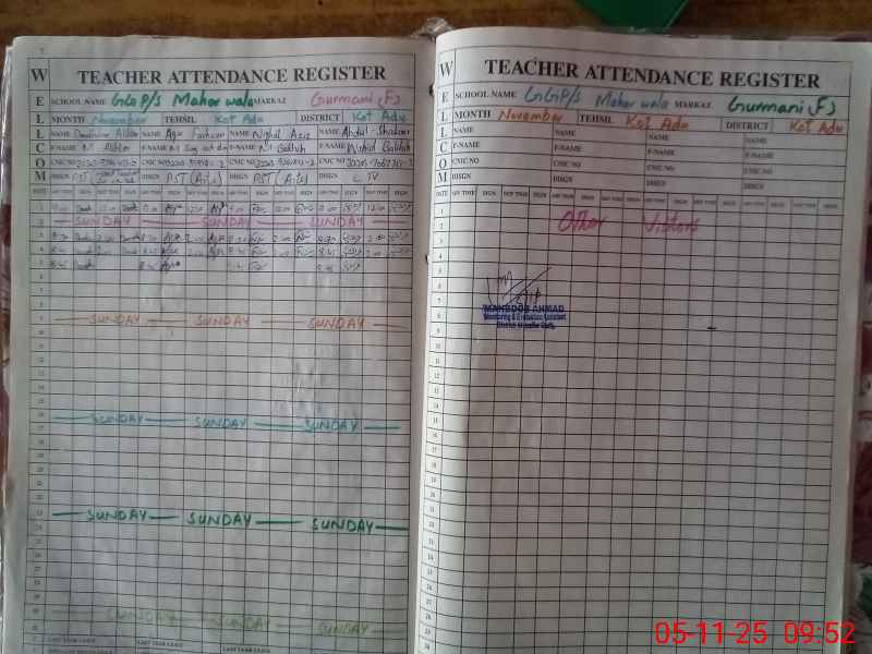 | District: KOT ADU | Tehsil: KOT ADU | Markaz: GURMANI- FEMALE | Level: Primary | |