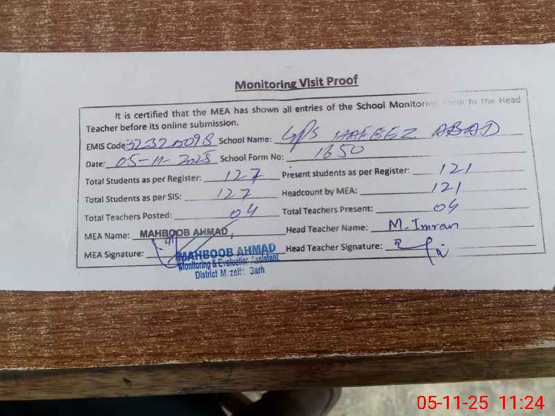 | EMIS Code: 32320098 | Name of School: GPS HAFEEZ ABAD | |||
