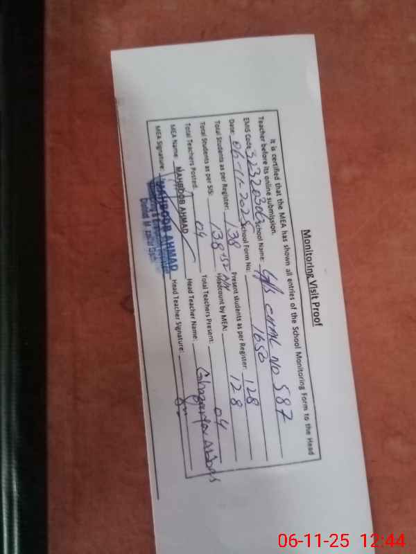 | EMIS Code: 32320306 | Name of School: GPS CHAK NO.587 TDA | |||