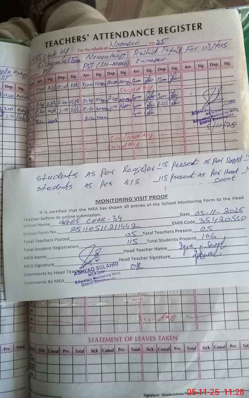 | Attendance Register | Head Teacher | MEA with School | Visit Proof |