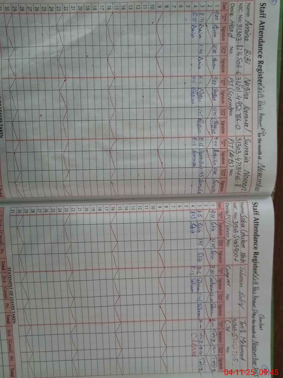| CNIC | Full Name | Designation | R/C | Absence During Last Calender Month |