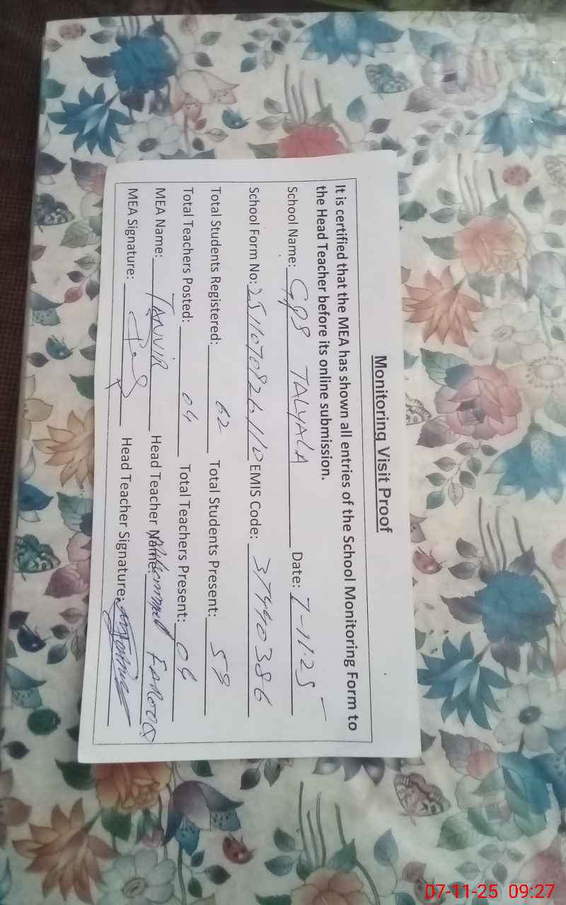 | EMIS Code: 37440386 | Name of School: GPS TALYALA | |||