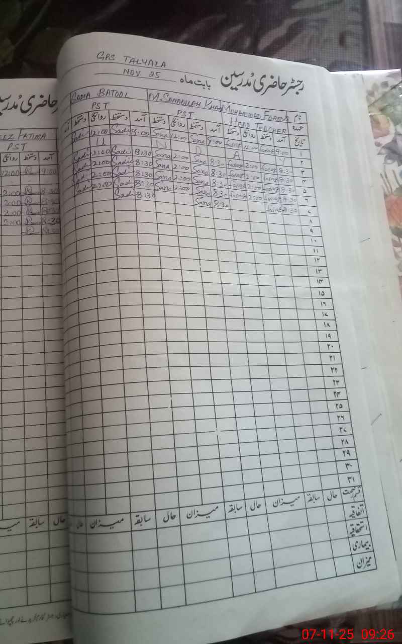 | Name: Mu**** FA**** Designation: (School Headmaster's/Headmistress's) PST/PTC/JV Phone/Cell Number: 03**** |