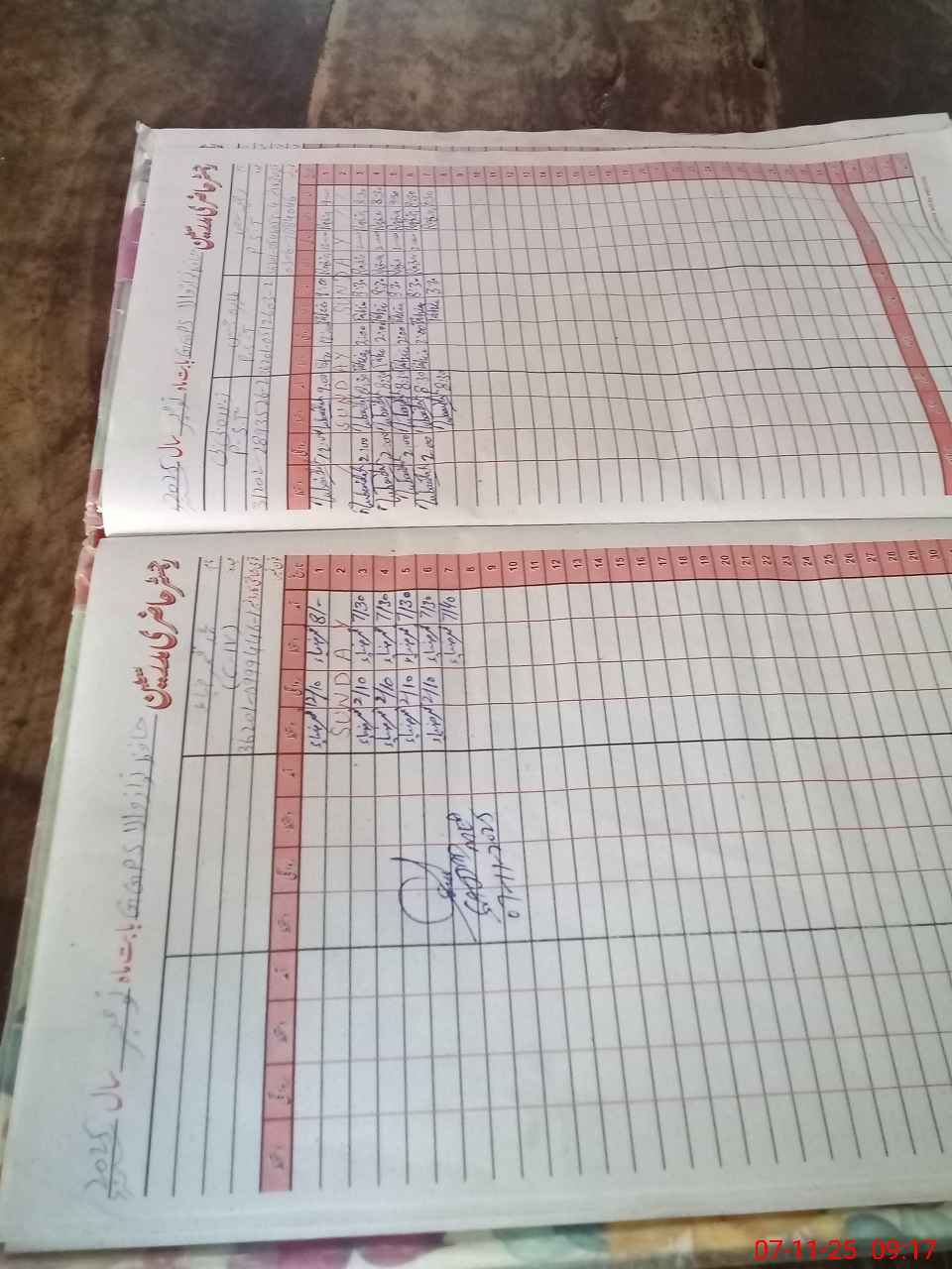 | CNIC | Full Name | Designation | R/C | Absence During Last Calender Month |