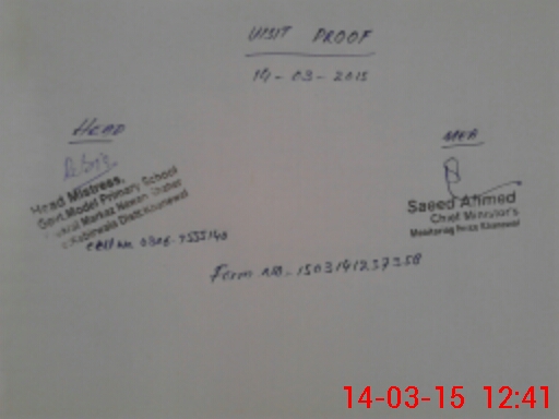 | Attendance Register | Head Teacher | MEA with School | Visit Proof |