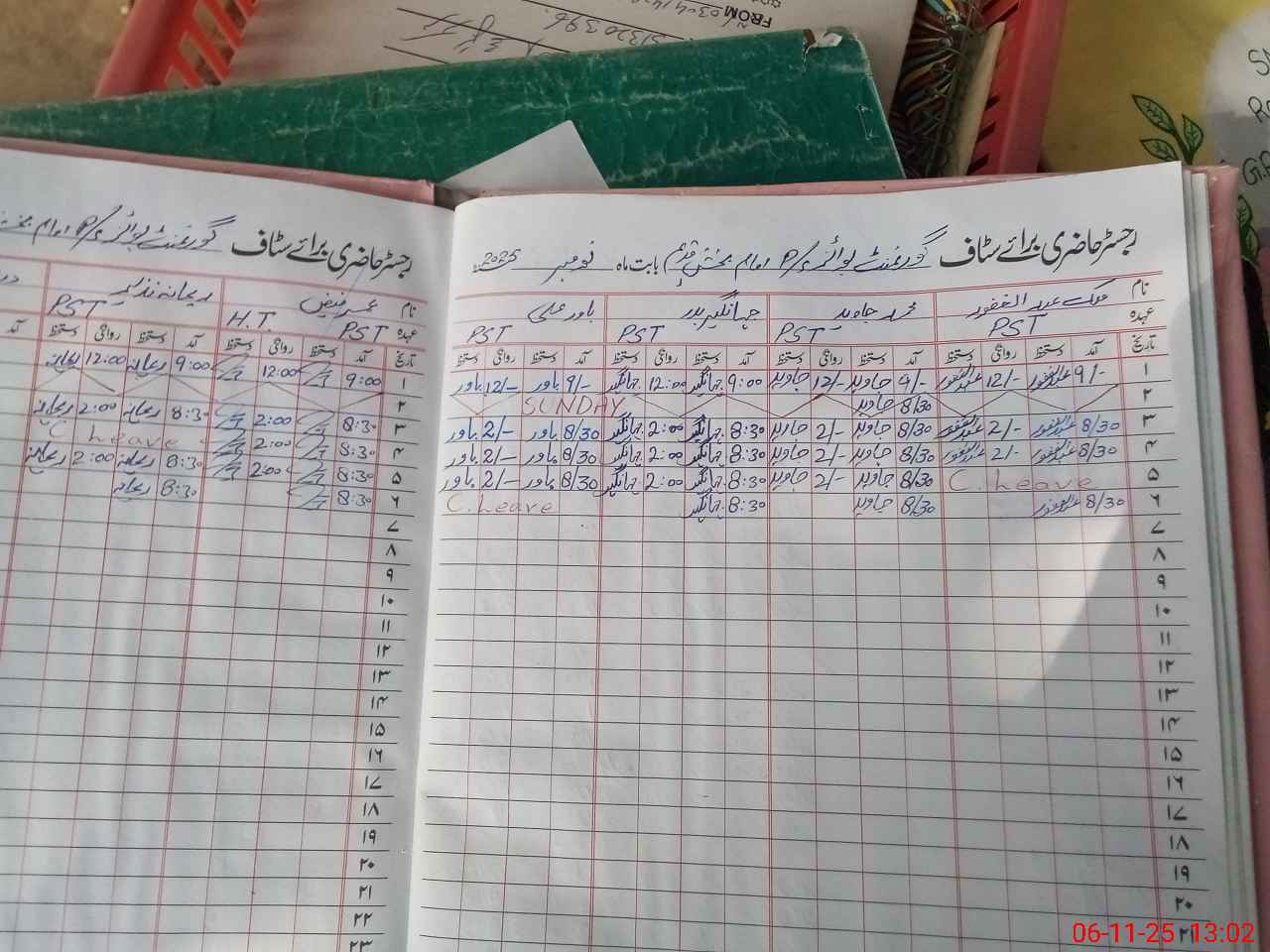 | CNIC | Full Name | Designation | R/C | Absence During Last Calender Month |