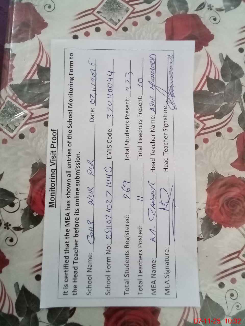 | EMIS Code: 37440044 | Name of School: GHS NOOR PUR | |||