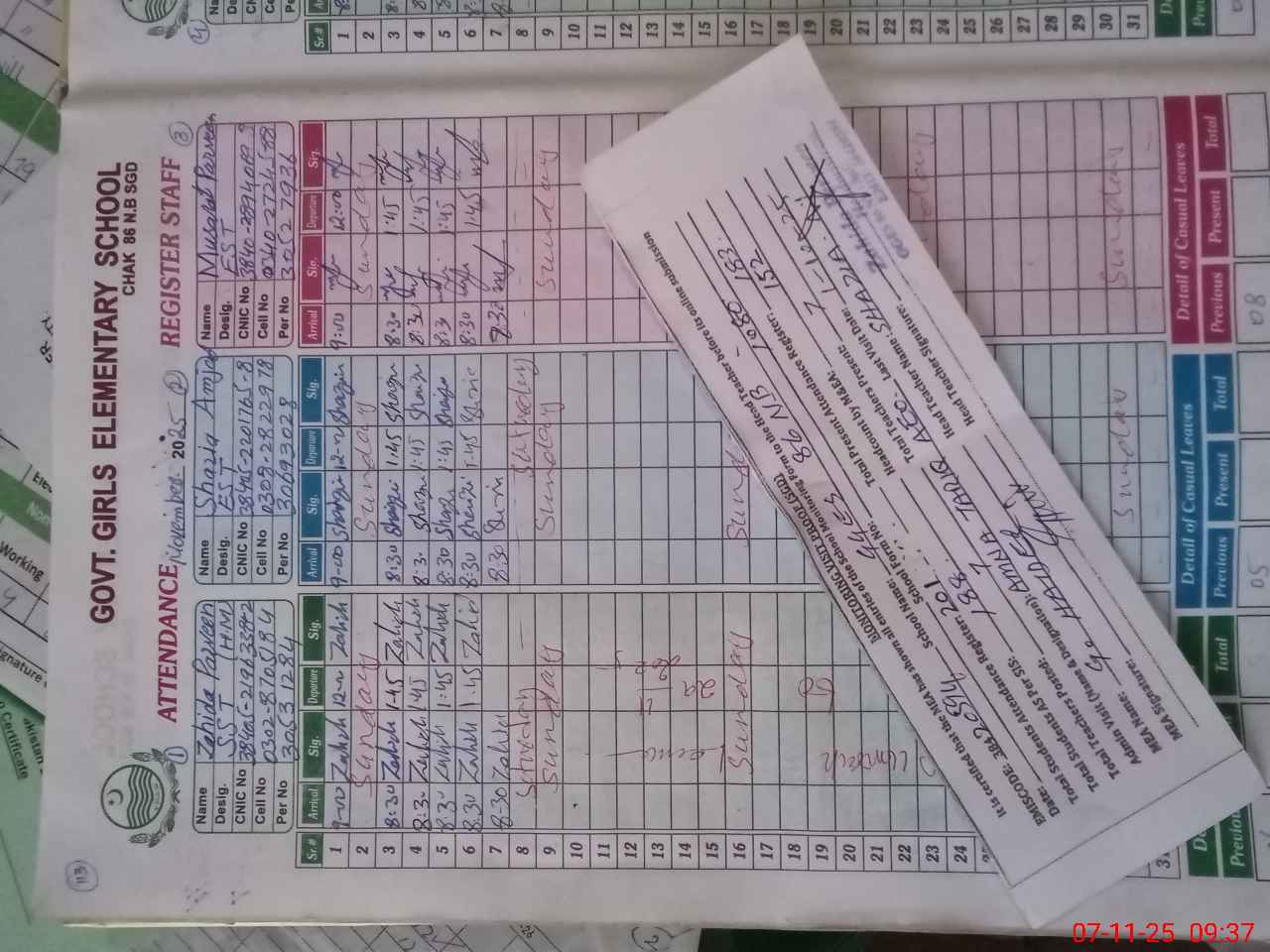 | Name: ZA**** PA**** Designation: (School Headmaster's/Headmistress's) SST Phone/Cell Number: 03**** |
