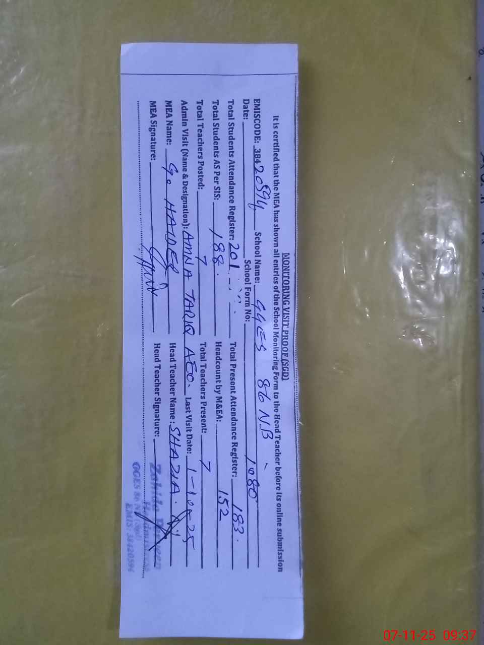 | Certified that this School was Inspected by the Undersigned MEA/DMO Today and the Information Stated Above is as Per Record. | |||||