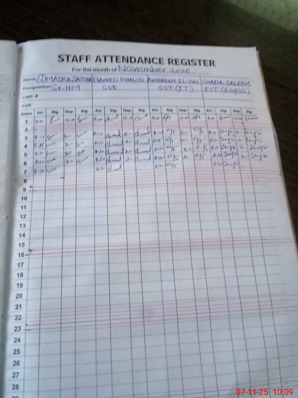 | Name: Su**** Sa**** Designation: (School Headmaster's/Headmistress's) Senior Head Mistress Phone/Cell Number: 03**** |