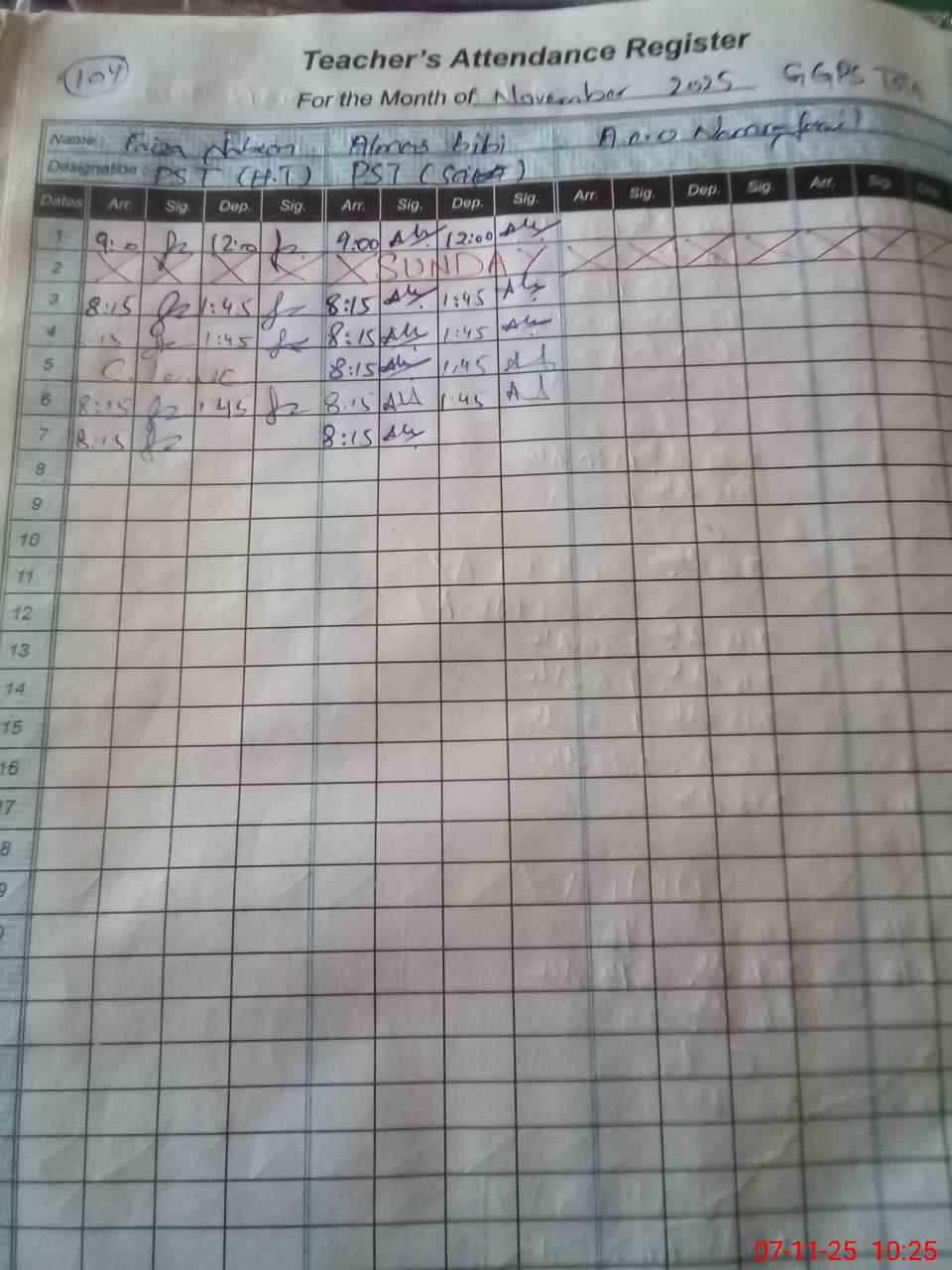 | Monitoring Date: 07-11-2025 | Start Time: 07-11-2025 10:23 AM | End Time: 07-11-2025 10:38 AM | Name of MEA: Za**** Me**** | |