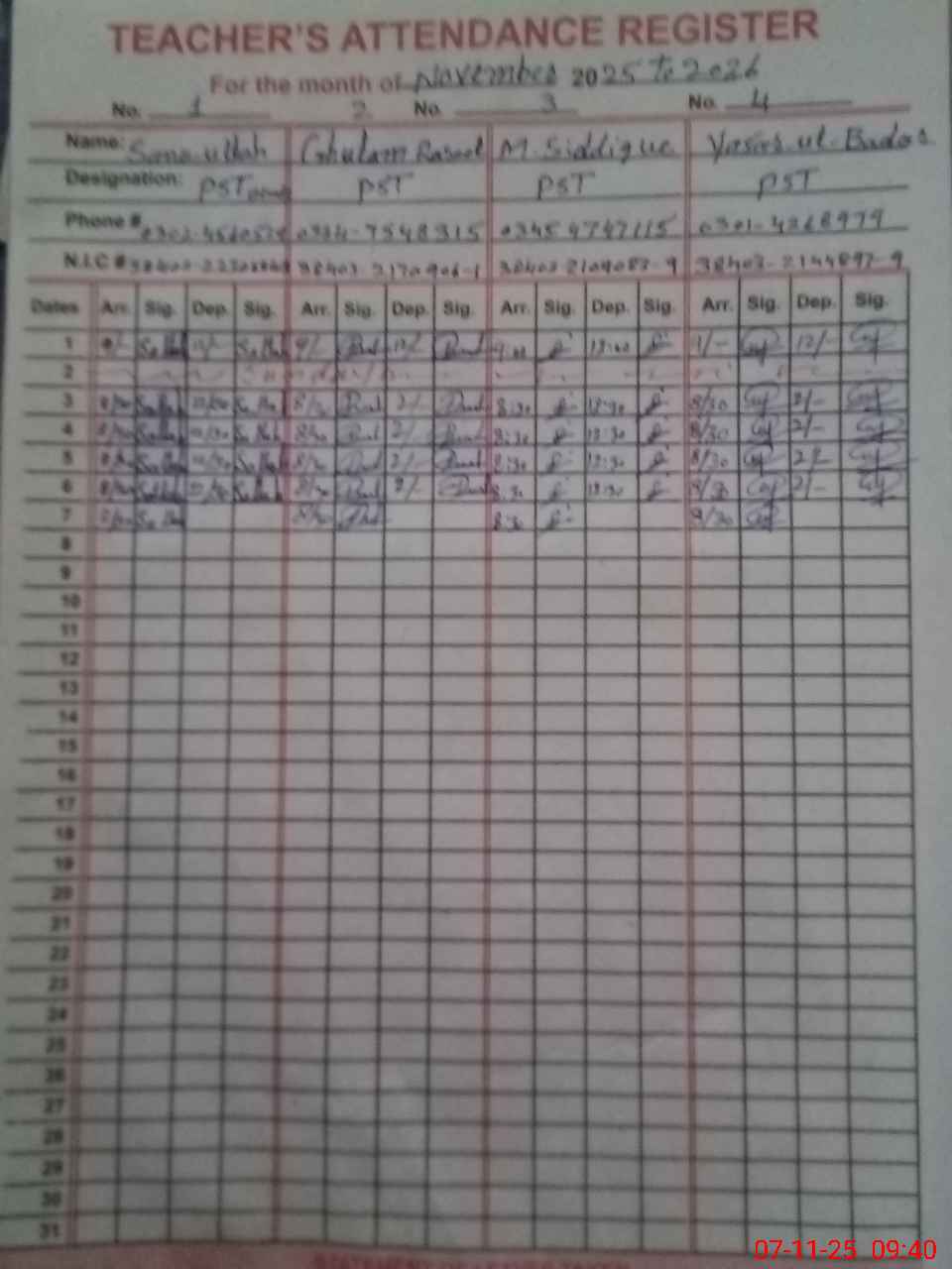 | Name: SA**** UL**** Designation: (School Headmaster's/Headmistress's) PST Phone/Cell Number: 03**** |