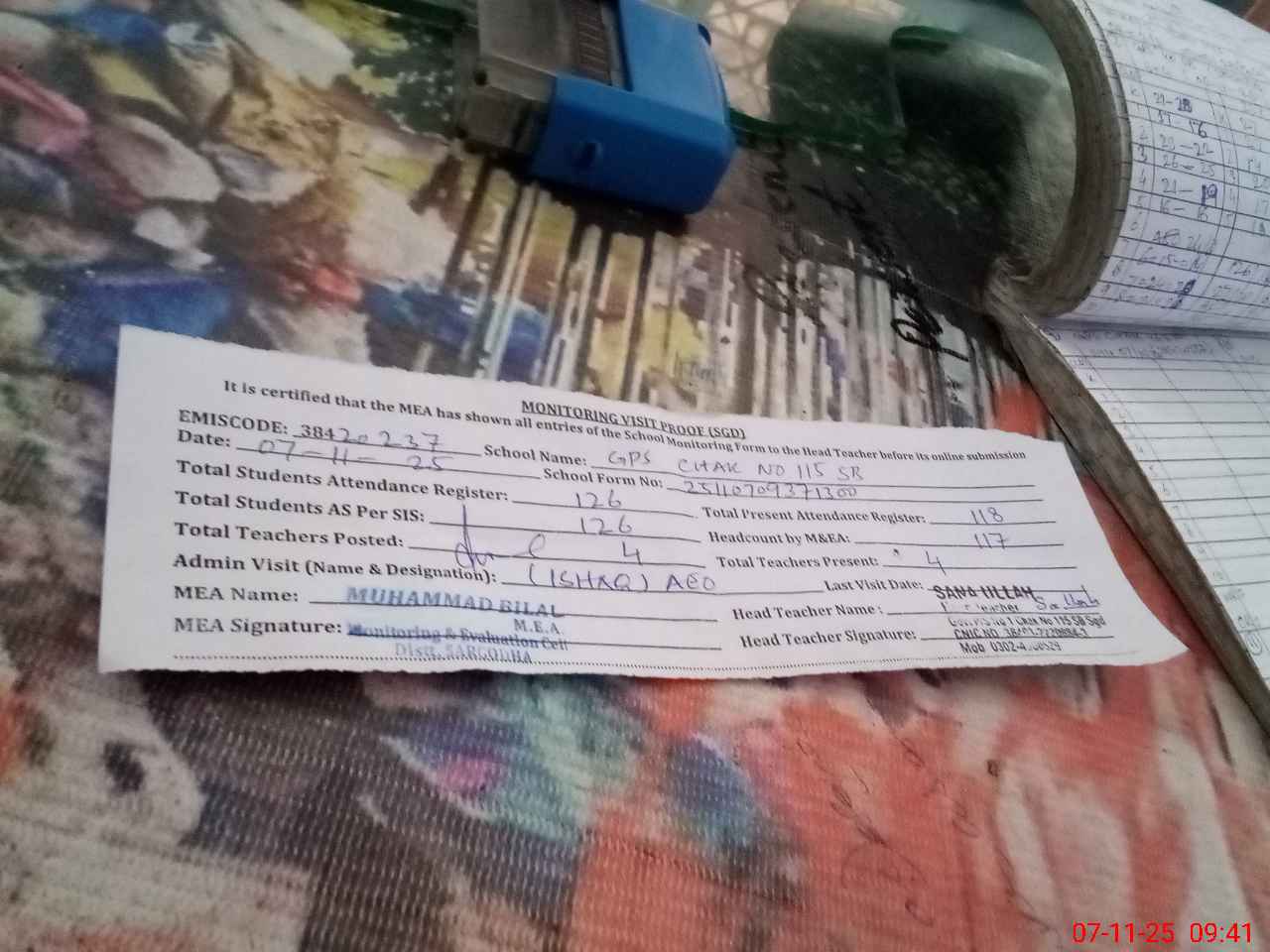 | EMIS Code: 38420237 | Name of School: GPS CHAK NO.115 SB | |||