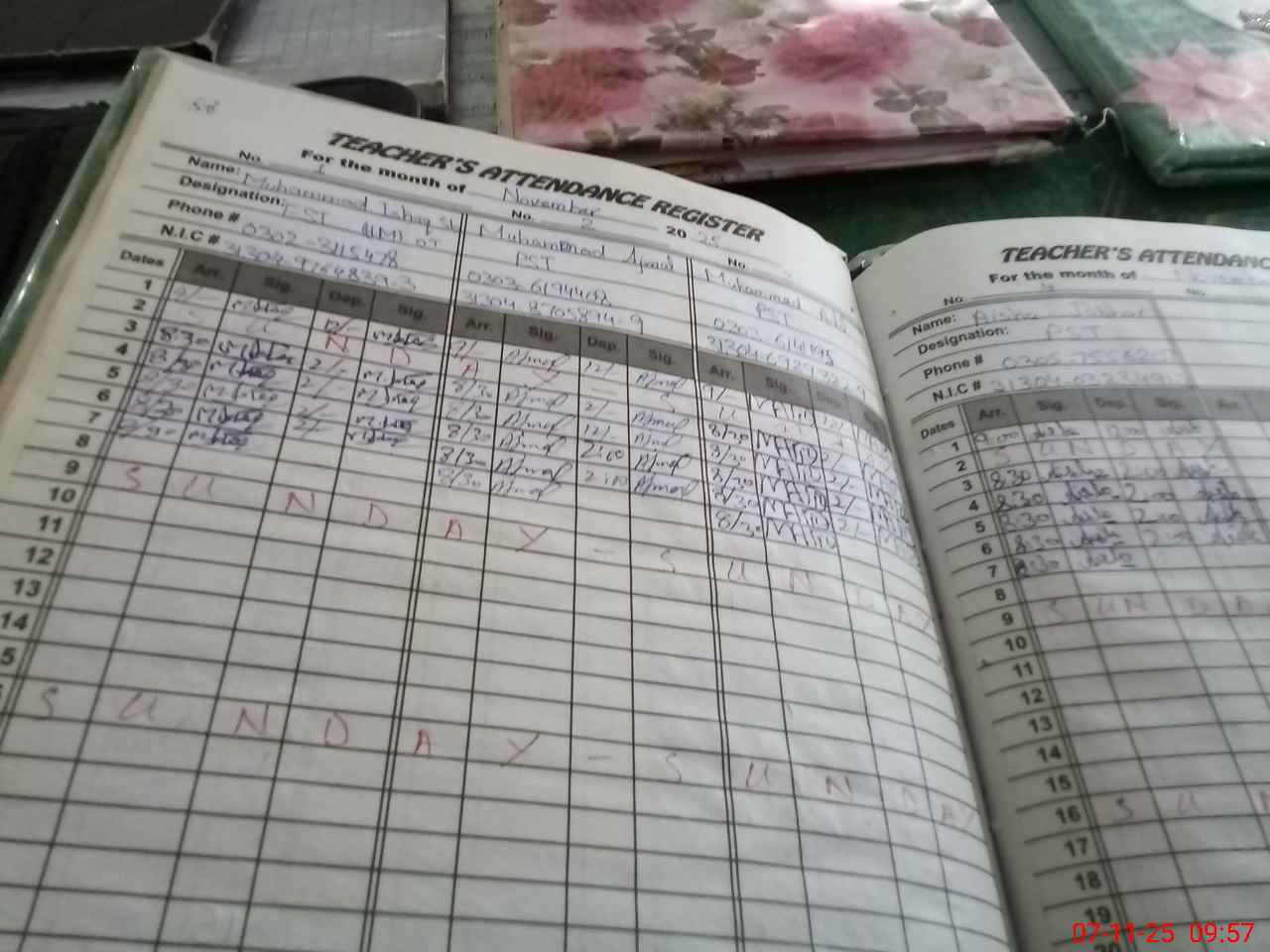 | CNIC | Full Name | Designation | R/C | Absence during last cal. month |