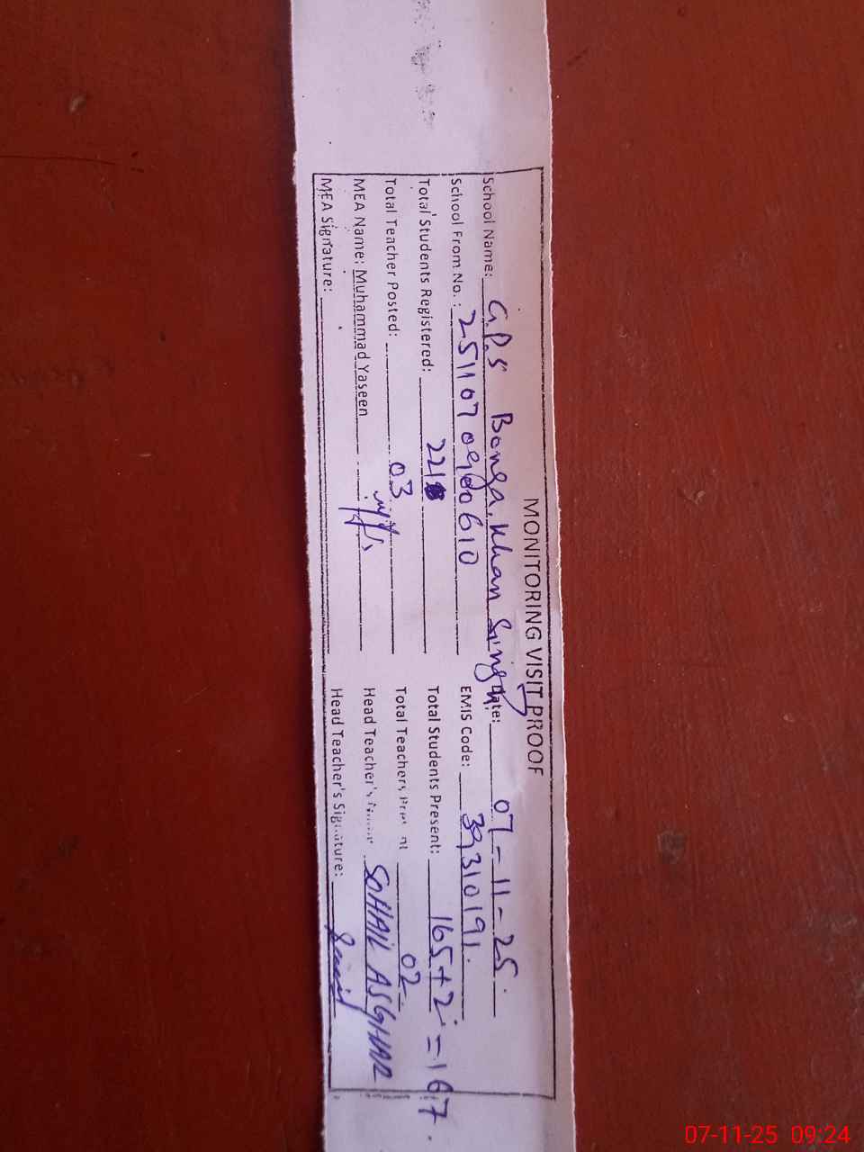 | EMIS Code: 39310191 | Name of School: GPS BUNGA KHAN SINGH | |||