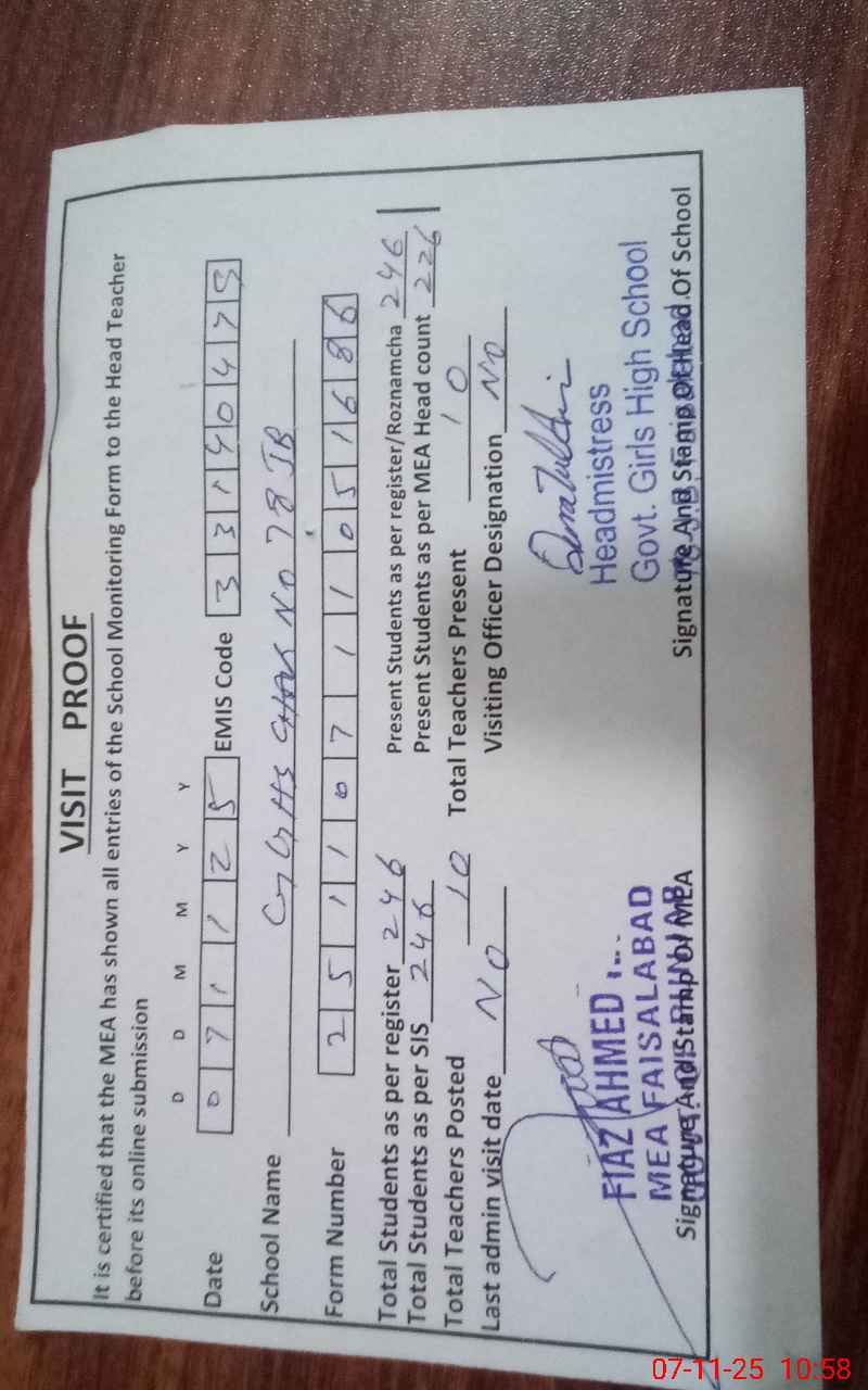 | EMIS Code: 33140479 | Name of School: GGHS CHAK NO 78 JB JODI | |||
