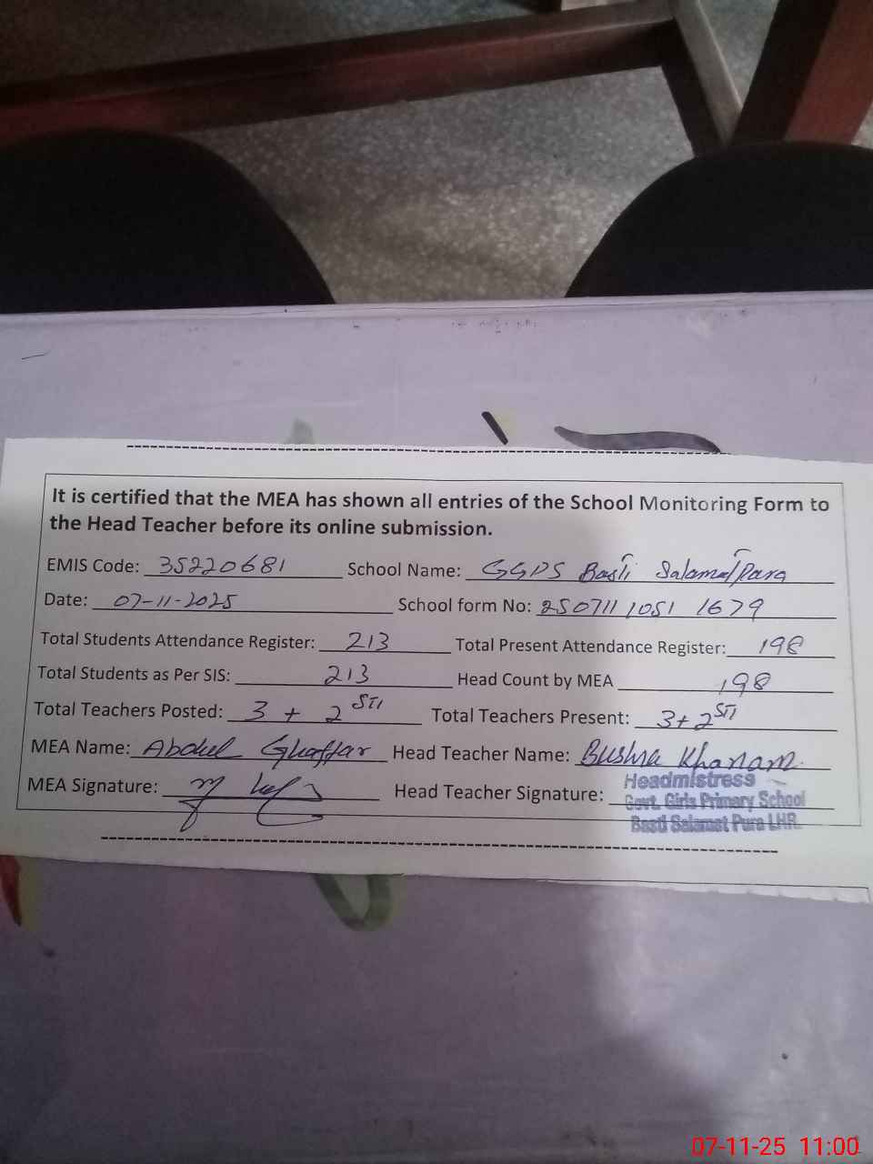 | EMIS Code: 35220681 | Name of School: GGPS BASTI SALAMAT PURA | |||