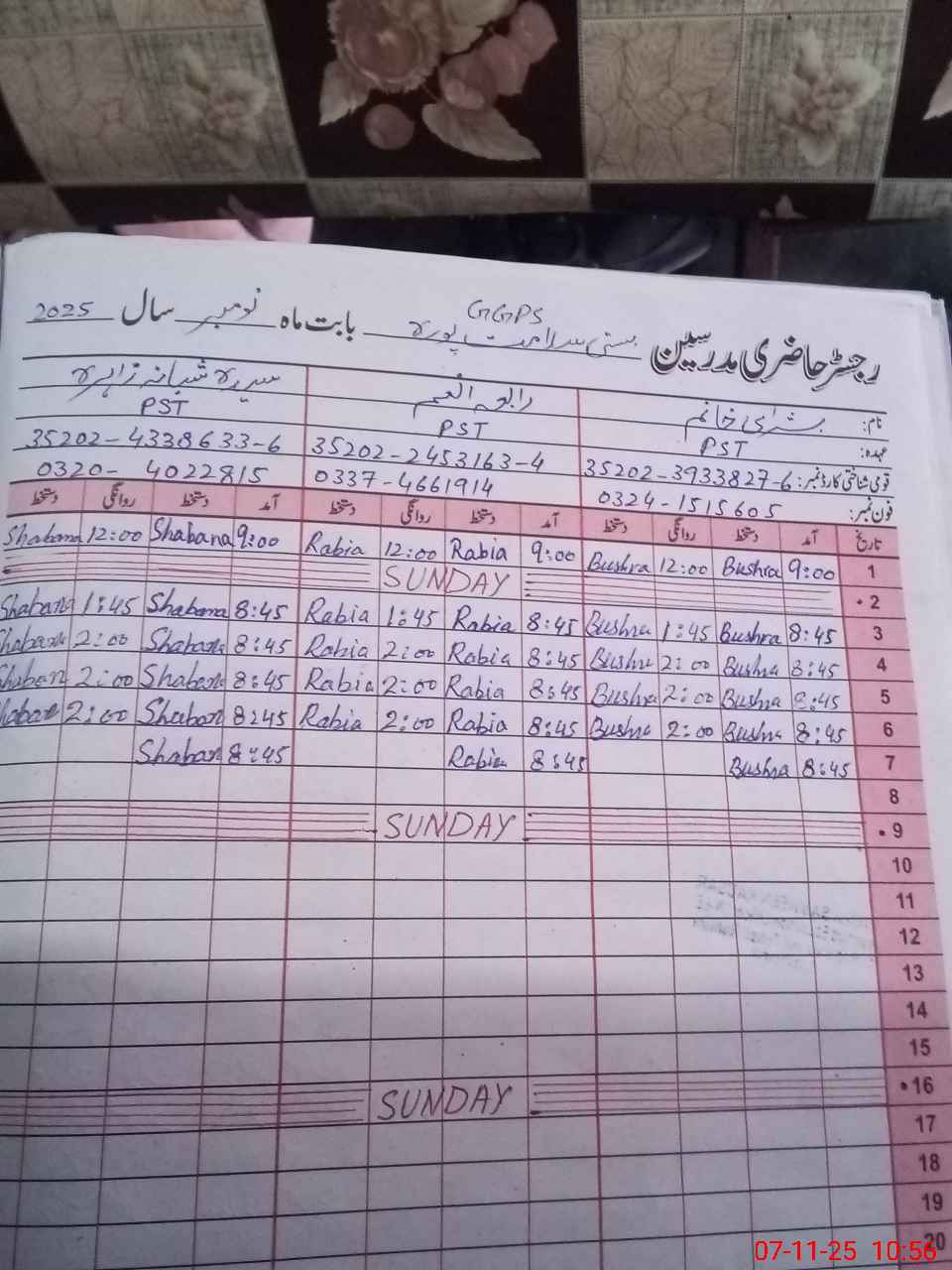 | CNIC | Full Name | Designation | R/C | Absence During Last Calender Month |