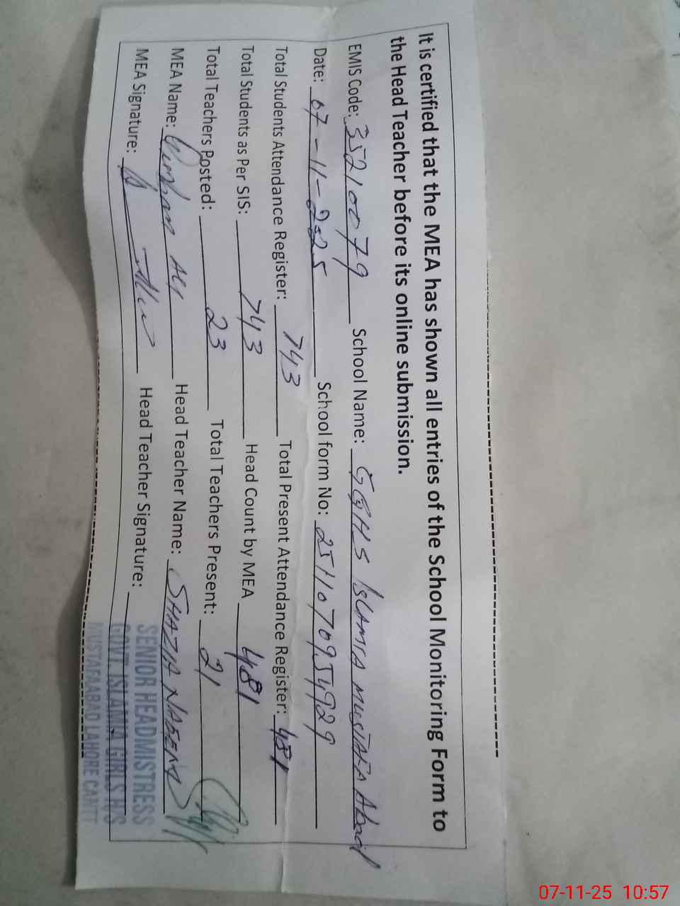 | EMIS Code: 35210079 | Name of School: GGHS ISLAMIA MUSTAFABAD | |||