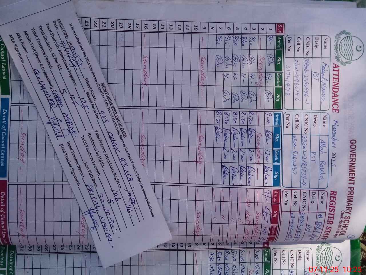 | Name: FA**** NA**** Designation: (School Headmaster's/Headmistress's) PST Phone/Cell Number: 03**** |