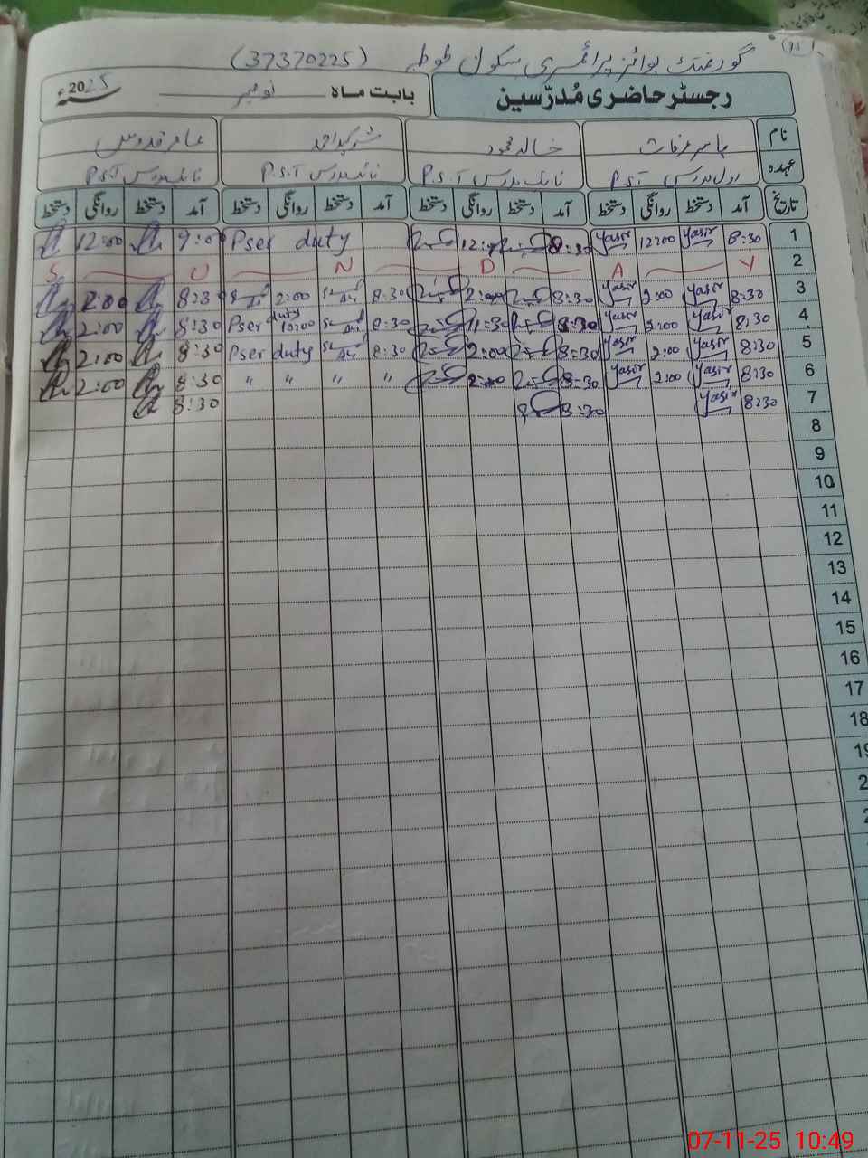 | Name: YA**** AR**** Designation: (School Headmaster's/Headmistress's) PTC/JV Phone/Cell Number: 03**** |