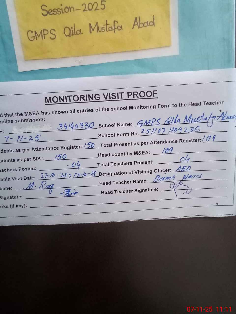 | EMIS Code: 34140330 | Name of School: GMPS QILA MUSTAFA ABAD | |||