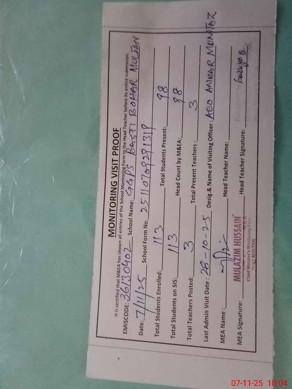 | EMIS Code: 36130402 | Name of School: GGPS BOHAR BASTI BOHAR MULTAN | |||