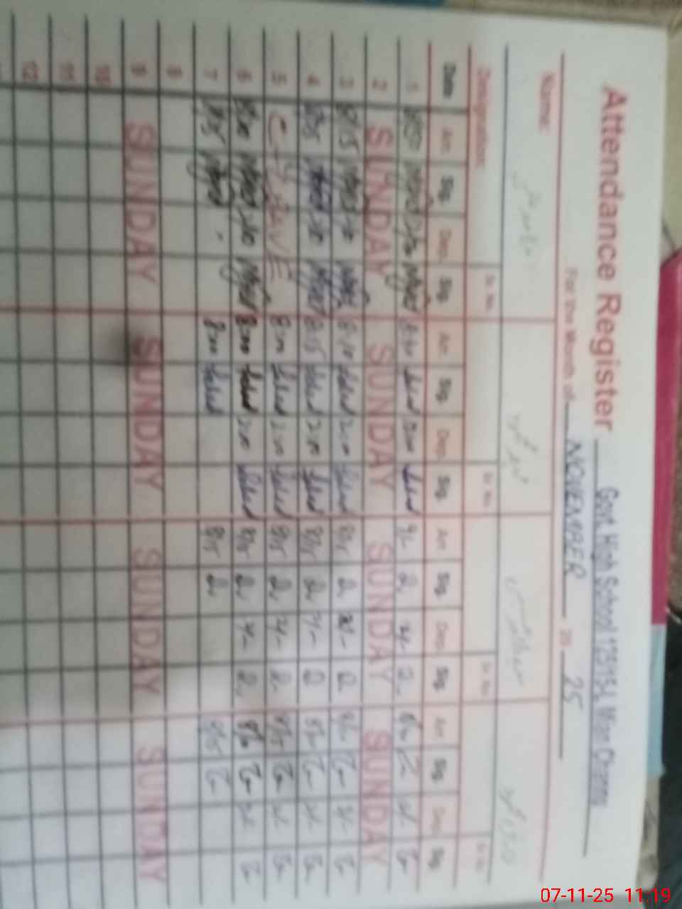 | CNIC | Full Name | Designation | R/C | Absence During Last Calender Month |