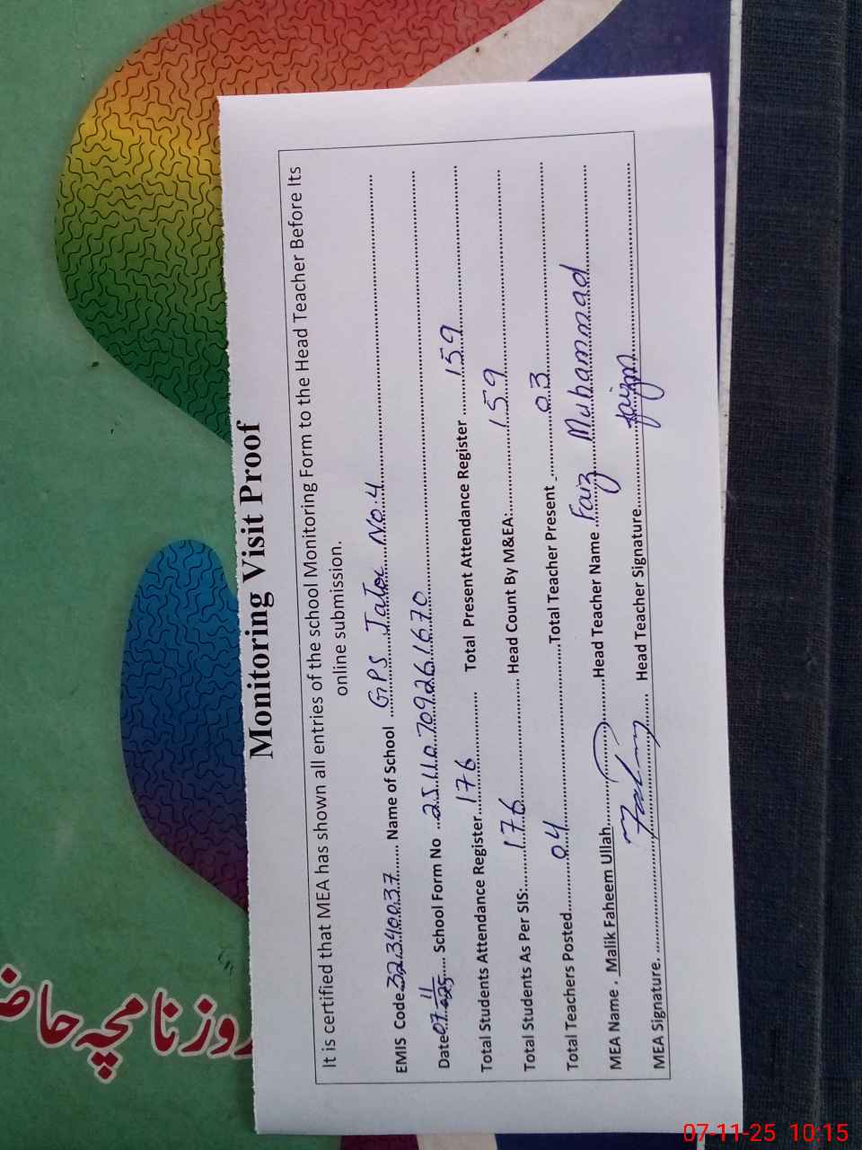 | EMIS Code: 32340037 | Name of School: GPS JATOI NO. 4 | |||