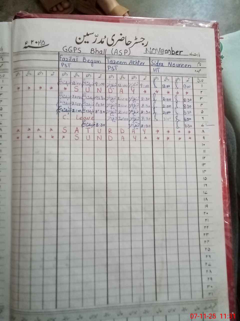 | CNIC | Full Name | Designation | R/C | Absence During Last Calender Month |