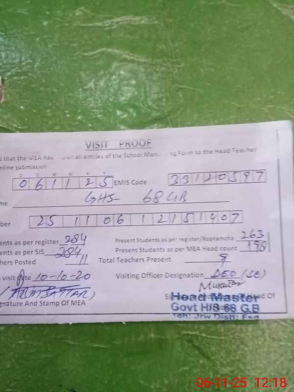 | EMIS Code: 33120597 | Name of School: GHS CHAK 68 GB JARANWALA | |||