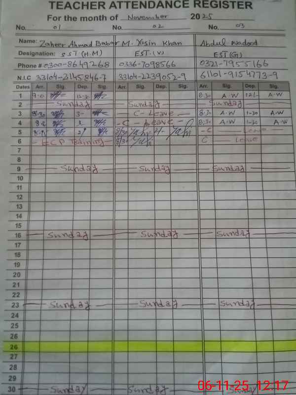 | Name: Za**** Ah**** Ba**** Designation: (School Headmaster's/Headmistress's) SST (Arts) Phone/Cell Number: 03**** |