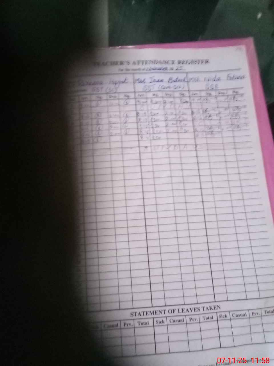| CNIC | Full Name | Designation | R/C | Absence During Last Calender Month |