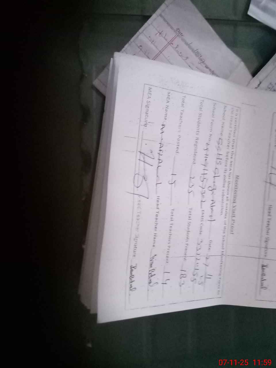 | Attendance Register | Head Teacher | MEA with School | Visit Proof |