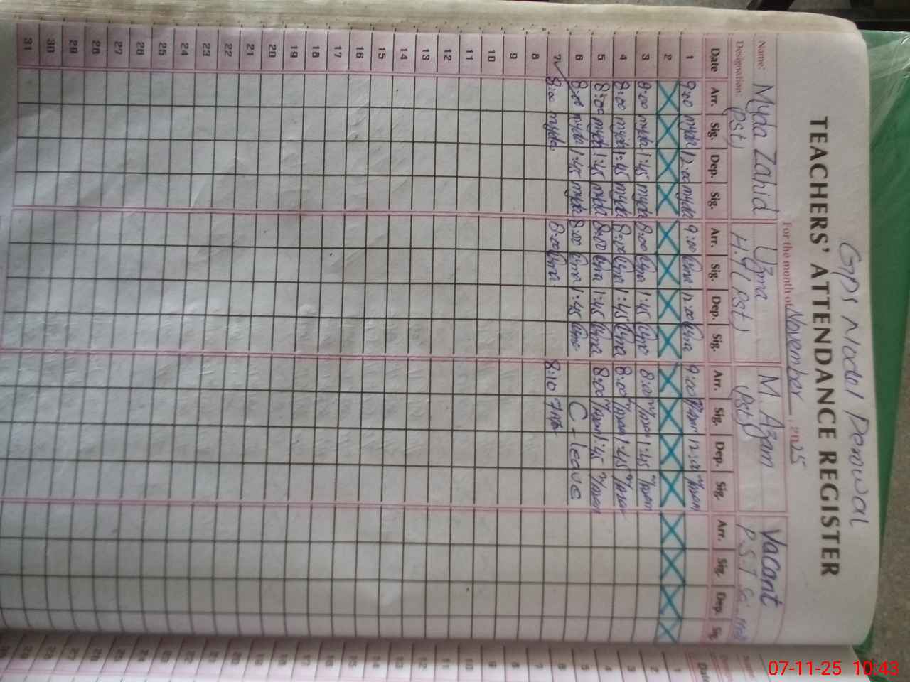 | Name: Uz**** Am**** Designation: (School Headmaster's/Headmistress's) PST Phone/Cell Number: 03**** |