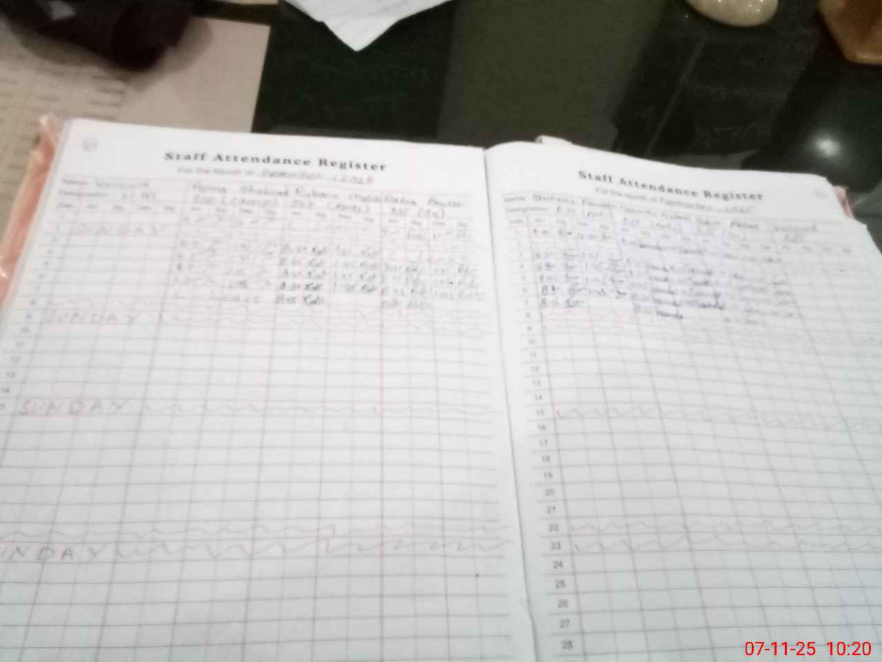 | CNIC | Full Name | Designation | R/C | Absence During Last Calender Month |