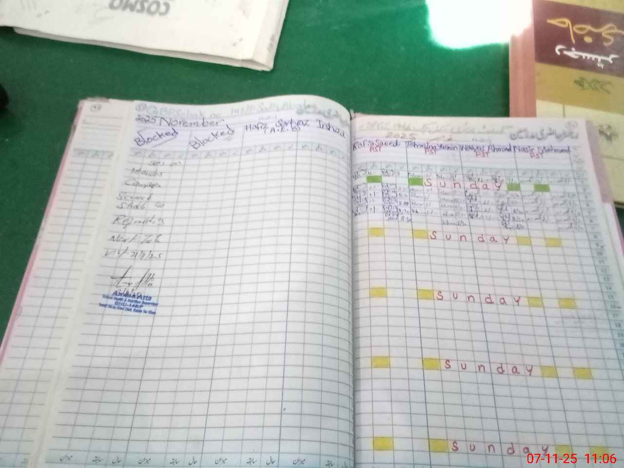 | School Visited by School Health & Nutrition Supervisor (No. of Visits) | 1 | Name1: | Amna atta | Name2: | |