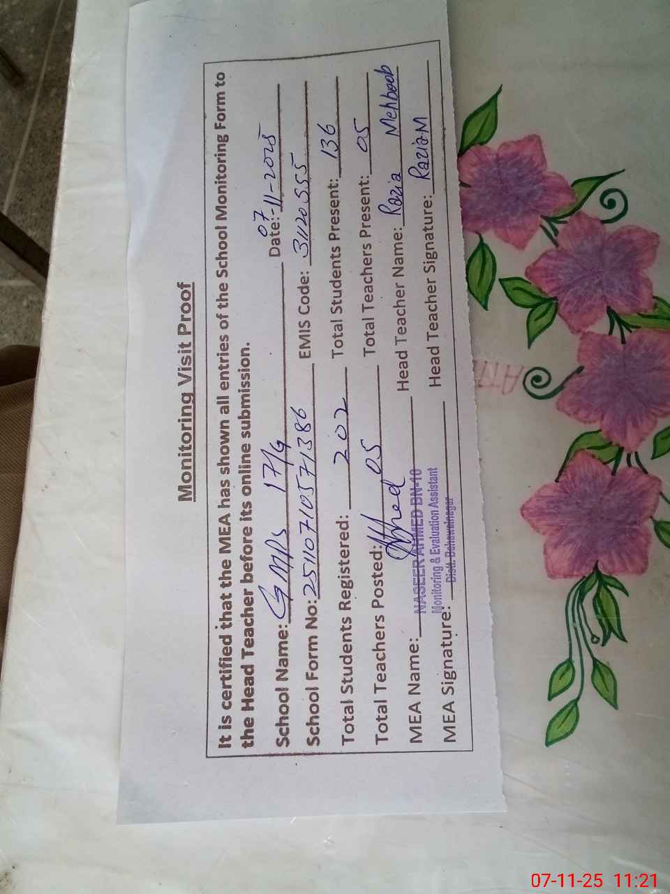 | EMIS Code: 31120555 | Name of School: GMPS 17/G CHISHTIAN | |||