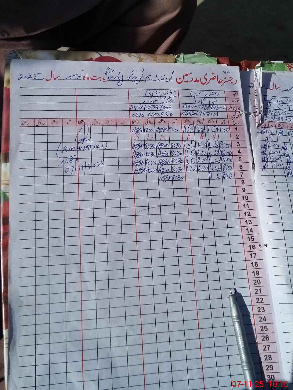 | Monitoring Date: 07-11-2025 | Start Time: 07-11-2025 09:58 AM | End Time: 07-11-2025 11:03 AM | Name of MEA: Am**** Al**** | |