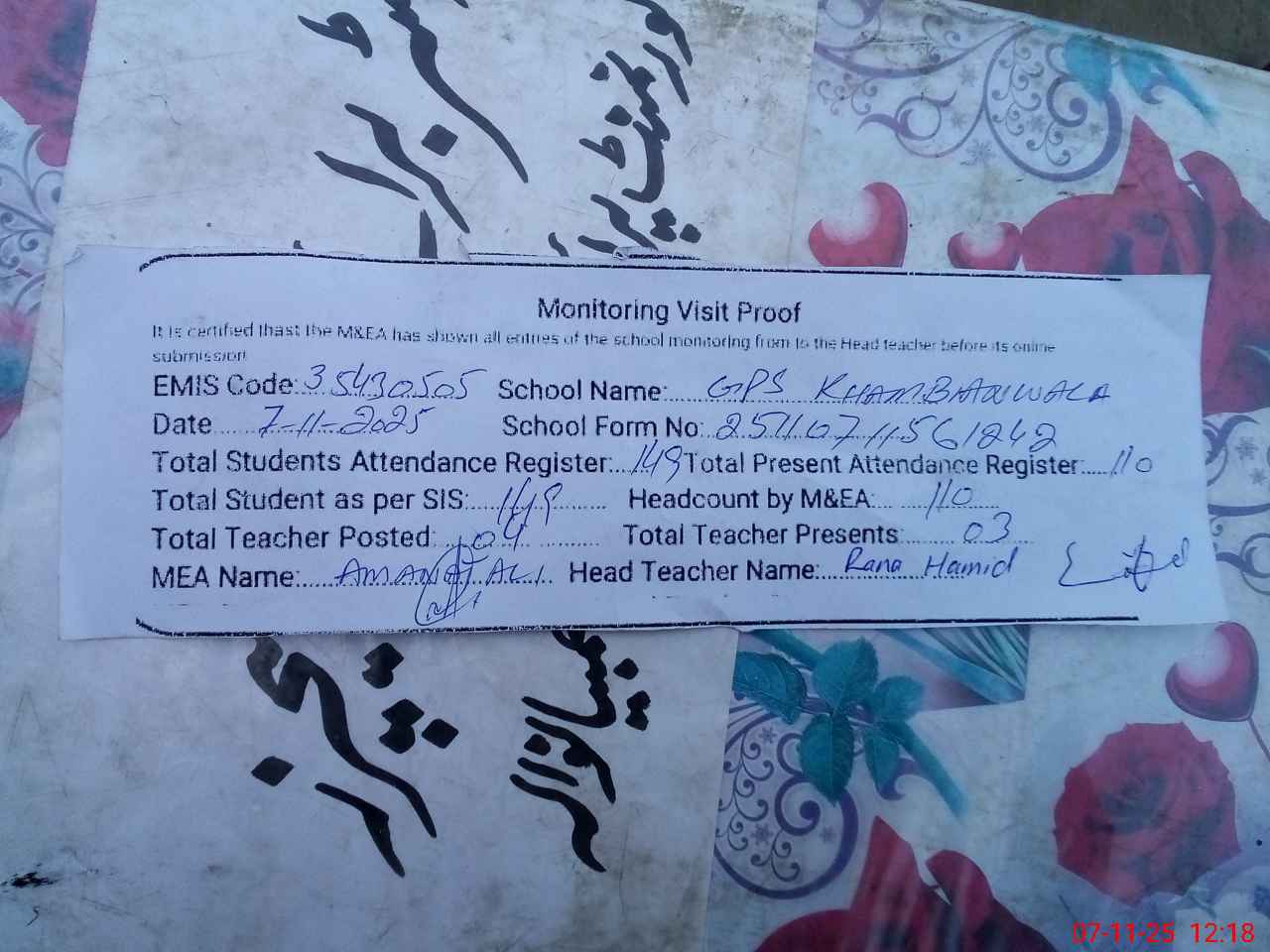 | EMIS Code: 35430505 | Name of School: GPS KHAMBIAN WALA | |||