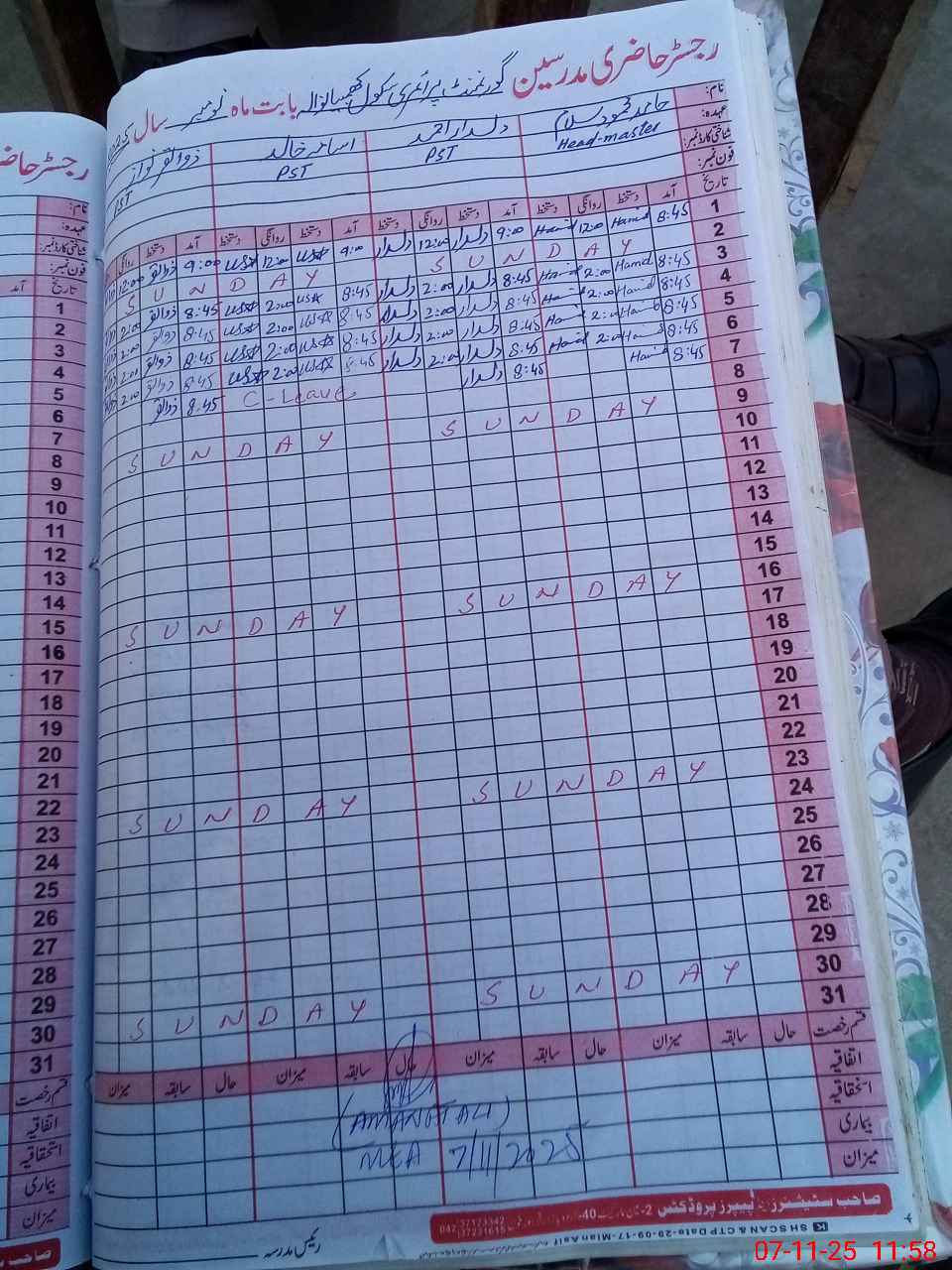 | Name: Ha**** Me**** Sa**** Ra**** Designation: (School Headmaster's/Headmistress's) PST Phone/Cell Number: 03**** |