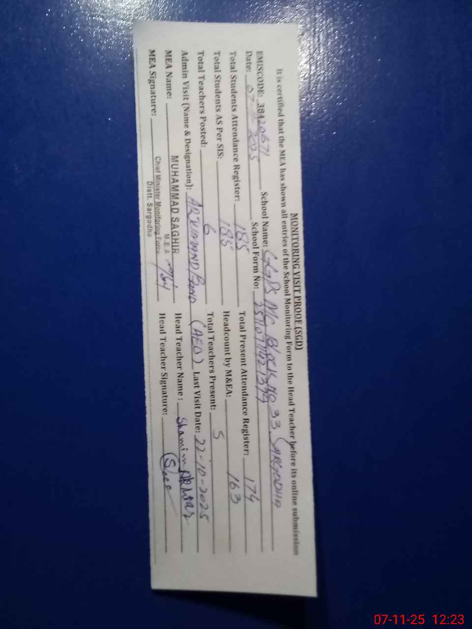 | EMIS Code: 38420671 | Name of School: GGPS MC BLOCK NO.33 SARGODHA | |||