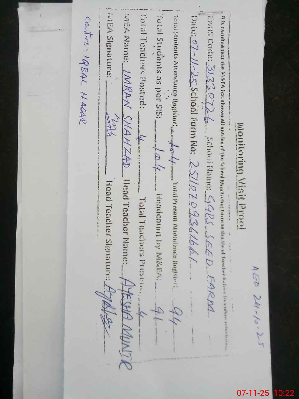 | EMIS Code: 31330726 | Name of School: GGPS SEED FARM | |||