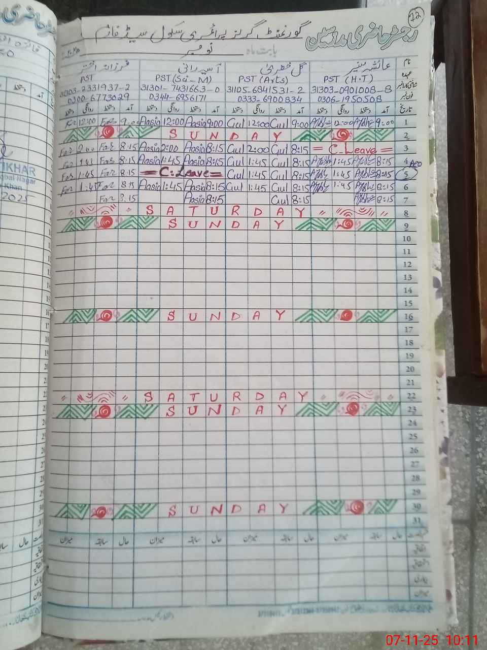 | Name: Ay**** Mu**** Designation: (School Headmaster's/Headmistress's) PST Phone/Cell Number: 03**** |