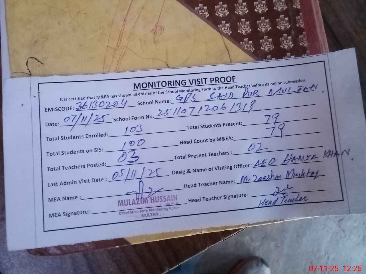 | EMIS Code: 36130204 | Name of School: GPS SAID PUR MULTAN P/O TATAY PUR MULTAN | |||