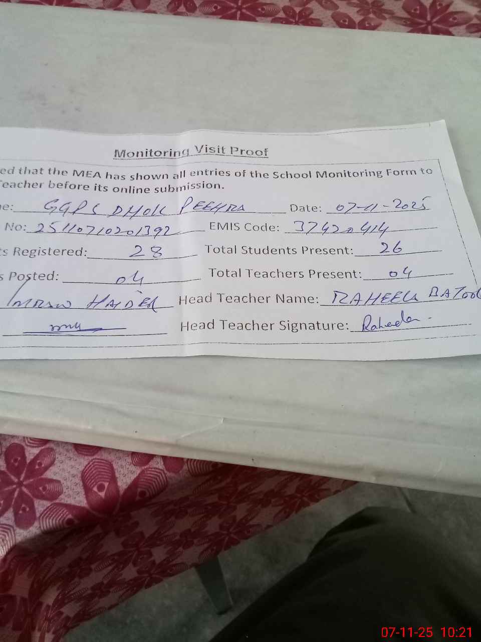 | Monitoring Date: 07-11-2025 | Start Time: 07-11-2025 09:49 AM | End Time: 07-11-2025 10:29 AM | Name of MEA: Im**** Ha**** | |